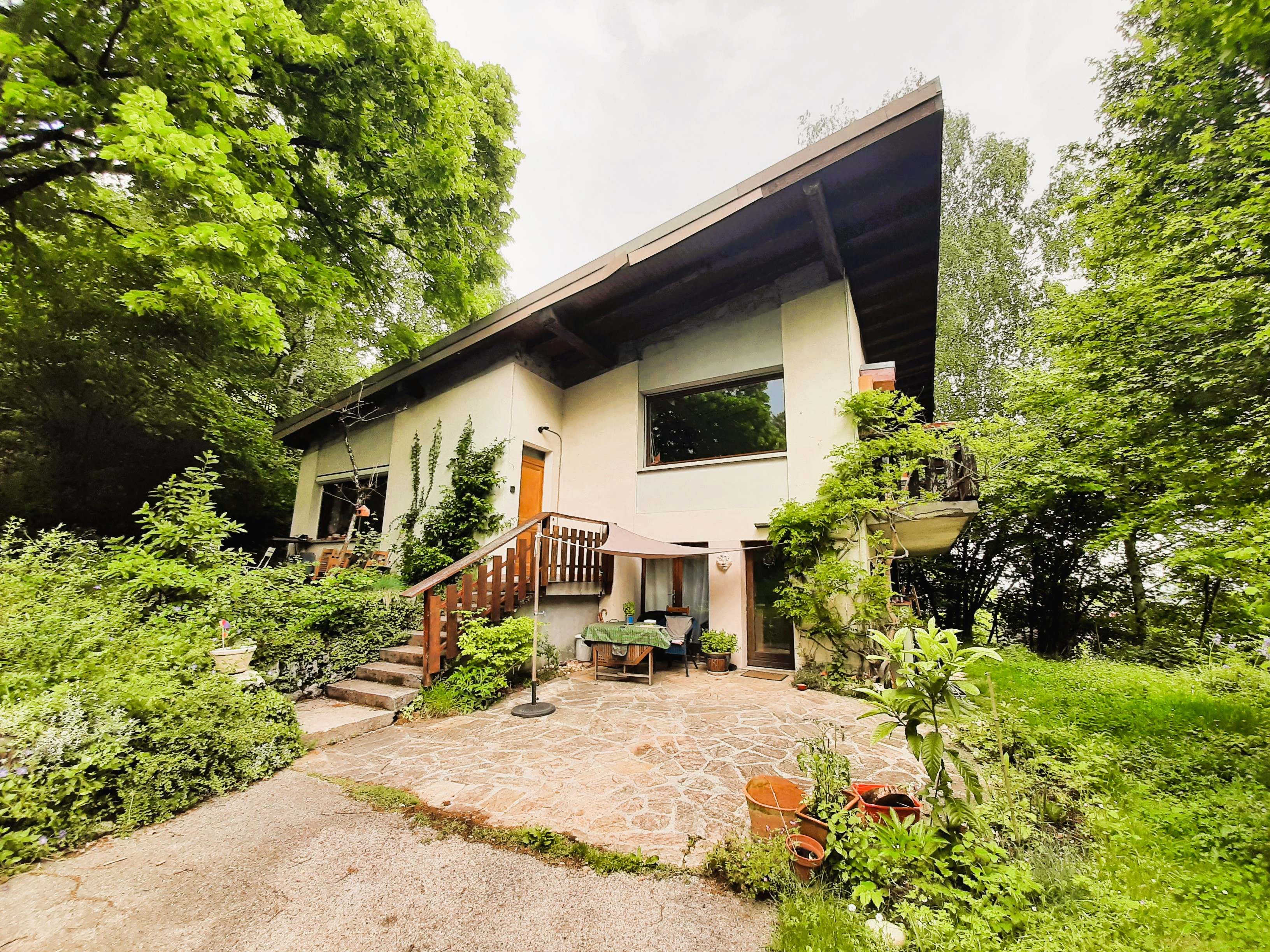 Située dans un écrin de verdure, nous vous proposons cette jolie maison d'architecte pour votre tranquilité. |